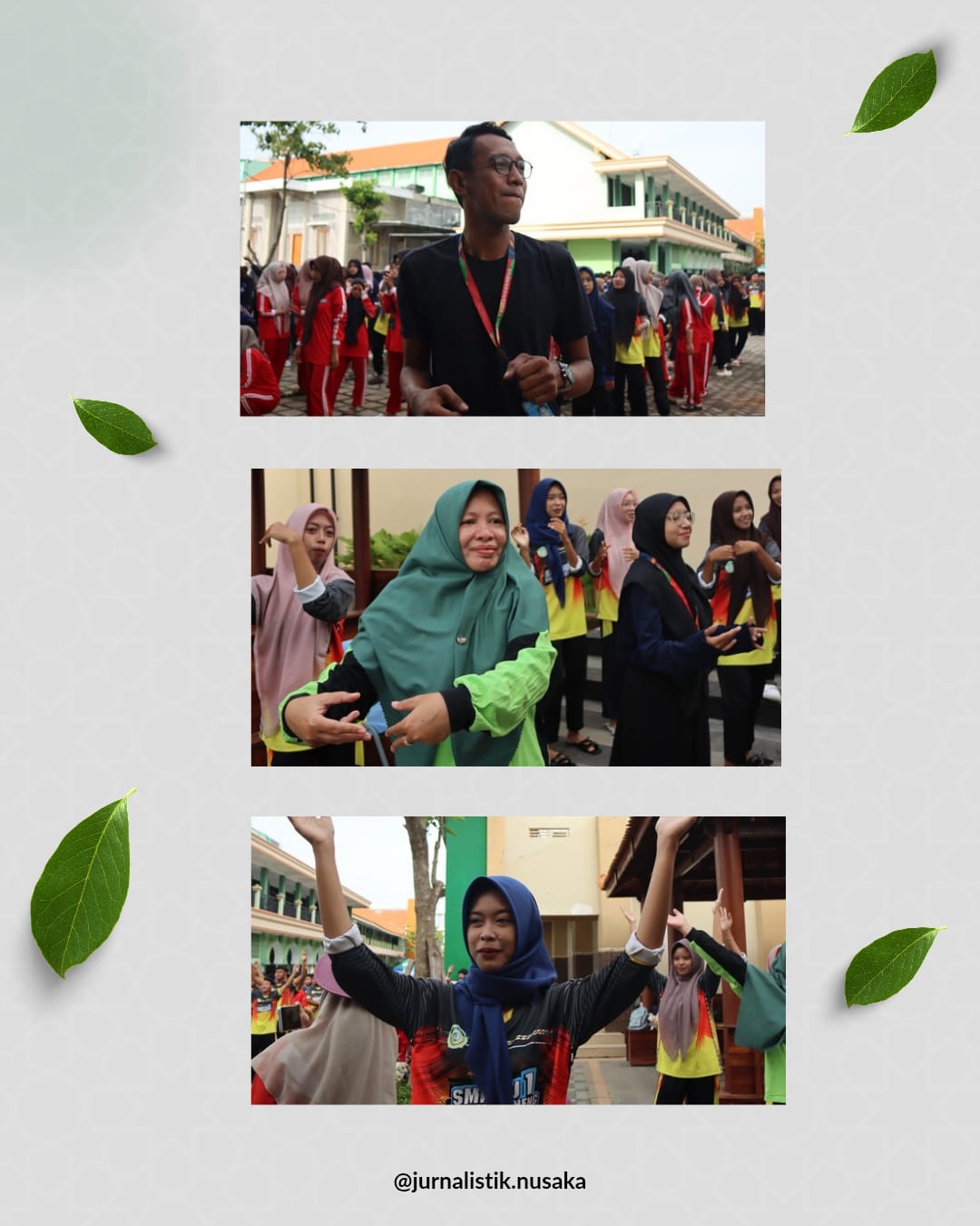 Pelaksanaan senam berlangsung dengan penuh semangat dan antusiasme. Seluruh peserta mengikuti gerakan senam secara bersama-sama, menciptakan suasana yang hangat dan energik di lingkungan sekolah.